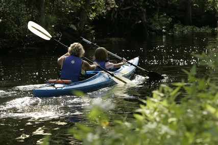 Grafik mit Paddler und StorchErkunden Sie von uns aus die schönsten Teile des Naturreservates mit seiner Vielfalt an Flora und Fauna.